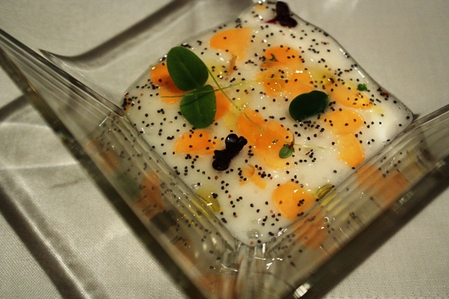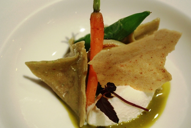 l' unico piatto che non ci è piaciuto: l'uovo con schiuma di pomodoro e crema asparagi