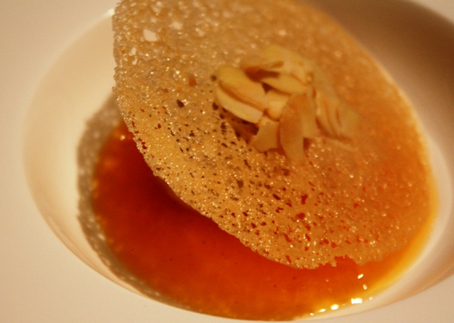 gelato alla liquirizia con croccante di mandorle e salsa alla zucca