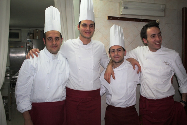 55 anni in due fanno presagire ad un’ulteriore ascesa (qui sopra Mario e Francesco Sposito). Li frena la location, un locale rimesso a posto con attenzione, ma che è un pò sperduto a Brusciano nel pieno del degrado napoletano. Ma andare alla Taverna Estia oggi è un vero piacere e per chi non c’è mai stato sarà una vera scoperta, quella di trovare una cucina elegante e moderna, con poche sbavature. Siamo venuti qui la prima volta nel 2003, allora erano i genitori in cucina (Ora sono a Bordighera all’ Alice Felice).