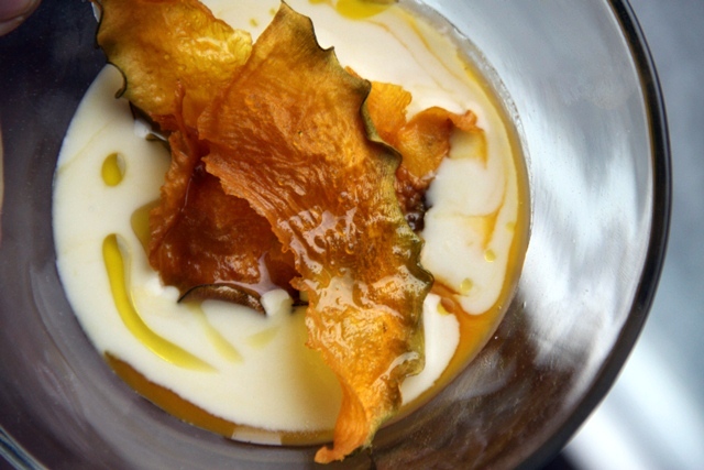 Uovo d’oca al latte, fonduta di zucca e tartufo nero