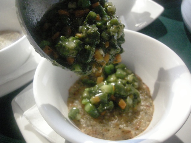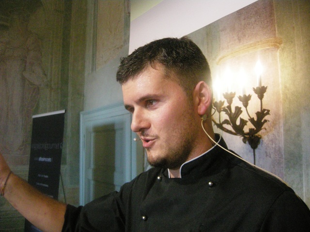 Non semplice realizzare questa ghiacciata in trasferta e con un caldo di 35 gradi. Ma lo sforzo è stato premiato e forse grazie a questa preparazione Stefano Ciotti ha conquistato l’ ultimo posto per la finalissima del Premio. Con lui alcuni altri chef poco noti, ma preparati, come Claudio Cesena, Alessandro Ferrarini che ha la responsabilità non piccola di far rivivere la Grotta di Brisighella, e Gianluca Esposito, giovanissimo, ma il suo minestrone caldo freddo ha lasciato il segno.